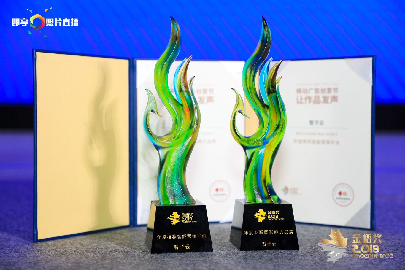 2019年6月20日,以“探寻移动增长新引擎”的第五届金梧奖移动广告创意节在上海小南国花园酒店落下帷幕。智子云在此次盛典中荣获“年度互联网影响力品牌”和“年度推荐智能营销平台”双项大奖。