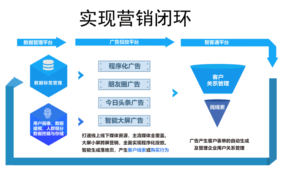 智子营销云平台积极开拓头部媒体流量的对接。先后完成了微信朋友圈、抖音、网易信息流、百度信息流、百度视频、今日头条、广点通等头部媒体的程序化对接,同时增加了激励视频、短视频、视频信息流、可玩广告等媒体形式的支持。