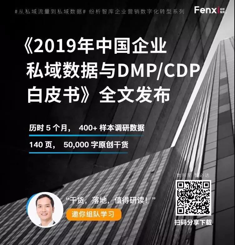 2019年6月4日,纷析智库全文发布《2019年中国企业私域数据与DMP/CDP白皮书》(以下简称白皮书),是业内第一次从中立的角度系统阐述企业私域数据价值及其应用系统(DMP/CDP)的专业白皮书,也是纷析智库#企业营销数字化转型系列#第一篇。