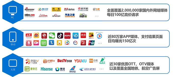 平台发布至今,经过多次升级迭代,具有访客召回重定向、动态创意广告、实时智能动态出价跨屏LBS定向投放等技术优势,更加便捷助力企业一键在各大媒体渠道完成广告投放,实现大数据精准营销。